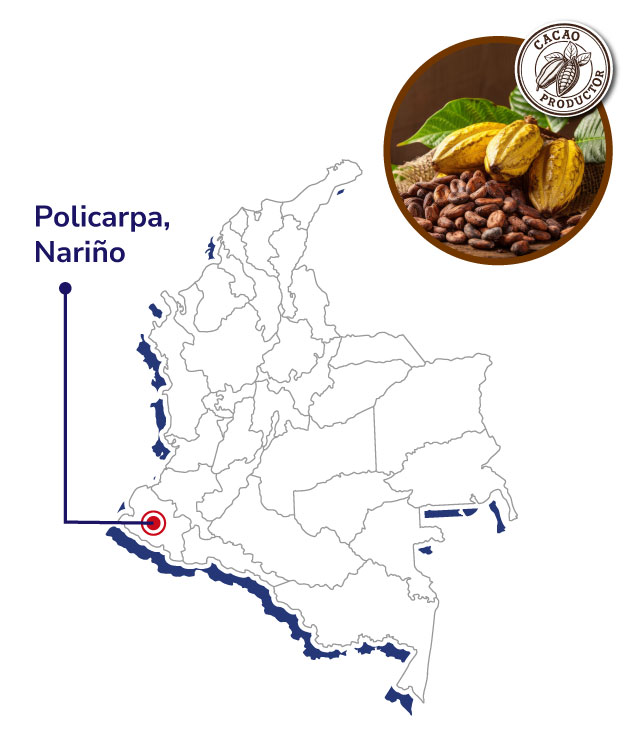 La Asociación de Productores de Cacao de Policarpa (ASOCACAO) nació en 2007 como alternativa de vida para familias víctimas del conflicto. Hoy es un símbolo de resiliencia, legalidad y transformación rural, con liderazgo femenino y enfoque de equidad.